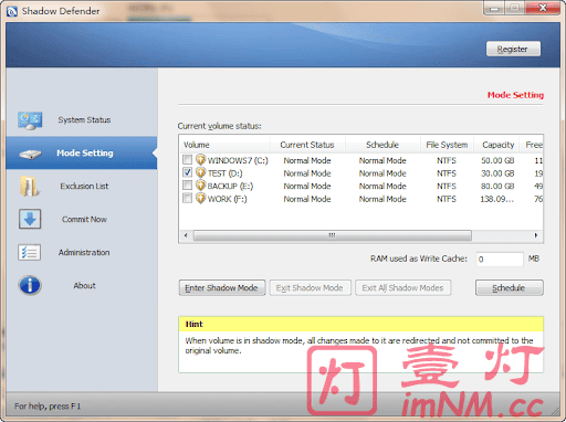 • 穿透控制(排除列表):你可以设置某个文件夹(比如“我的文档”或某个游戏目录)不进入影子模式。这样即使重启,这些文件夹里的改动也会被保留。